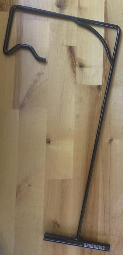 The crash bar tool is used to open a set of double double doors from the outside of the door. Usually, the ability to use this tool is dependent upon a sufficiently large gap existing between the doors. The tool is slipped between the gap, rotated to make contact with the exit mechanism, and used to depress the exit control. This tool is small enough to be concealed under a shirt and an improvised crash bar tool can be made using a carpenters square. Door fitment can be adjusted using the pry bar or the air wedge included in the physical kit.