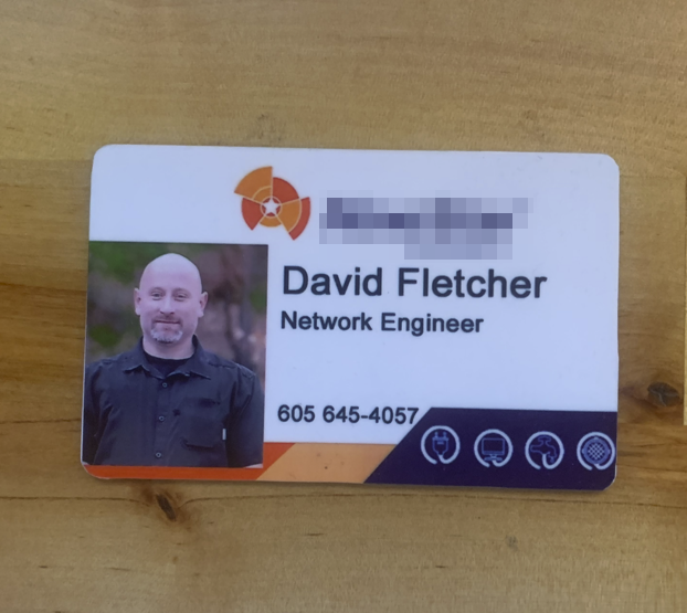 The result is a high quality visual representation of an employee badge. Since the image is on the photo paper applied to the RFID card, rather than direct print, the photo can be removed and the badge reused. An example badge used on an actual test is shown below.