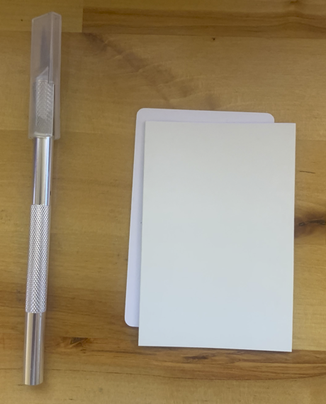 The paper used by the printer is adhesive backed and is slightly larger than the size of a standard RFID card. Once the print is complete, the photo paper is applied to the RFID card, then trimmed using an X-Acto knife.