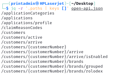 As an alternative, the paths can be extracted from the specification, path variables can be identified, and then substitutions can be made to conform with the selected API platform tool. Extraction of paths using the jq tool is shown below.