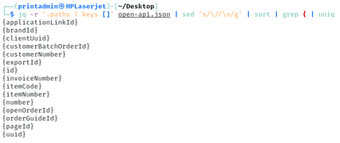 Once the paths are exposed, the results can be used to identify all unique path variables using a combination of the jq, sed, sort, grep, and uniq utilities.