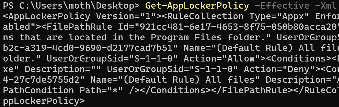 Get-AppLockerPolicy -Effective -Xml