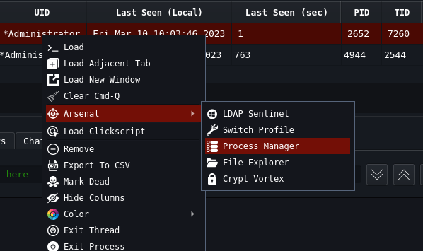 Process Listing to decide on Process Injection can be done by right clicking on your agent