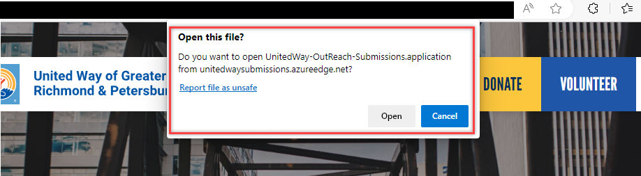 When a user goes to the site with the ClickOnce app, it is automagically clicked by the code above they will see the following.