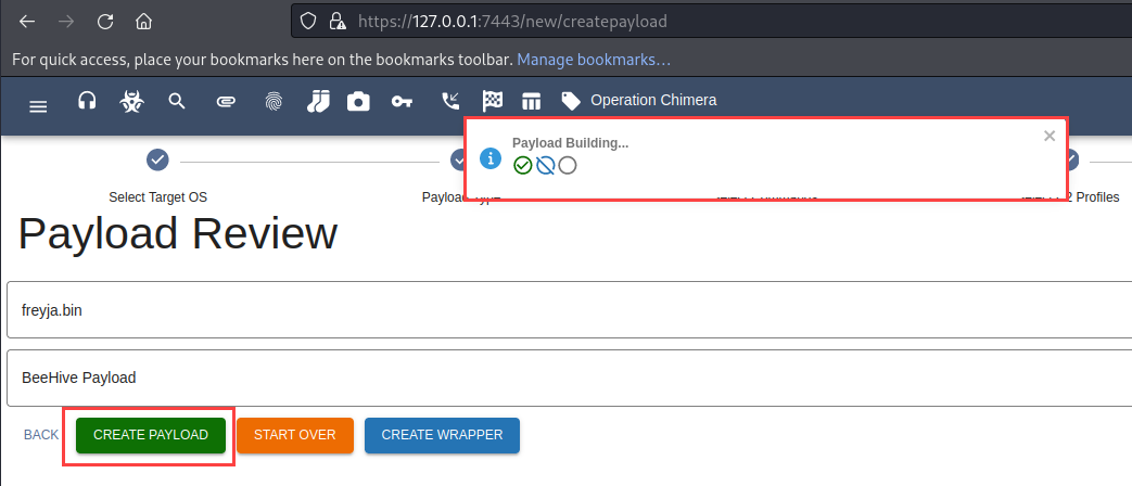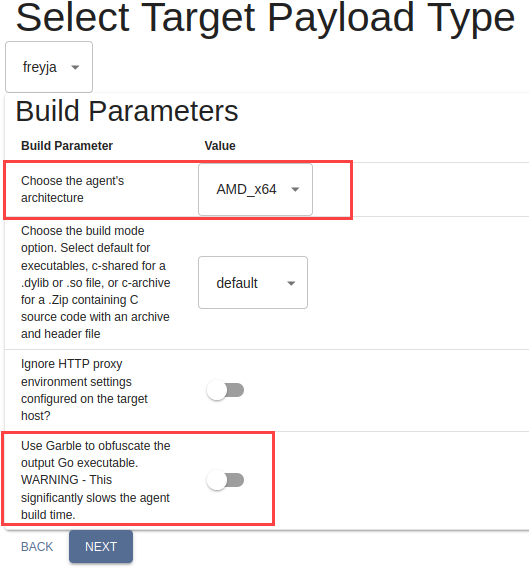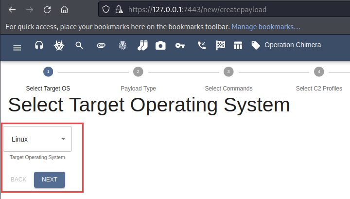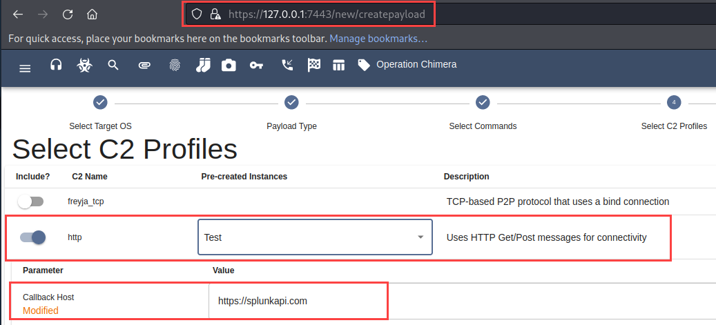 Click next until you get to the screen where you can select your C2 profiles. Select your profile that was made in Step 9. In this documentation it was the “Test” profile.