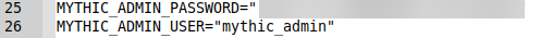 The Mythic admin password and username are located in the .env file on line 25 and 26 in the same directory it was cloned. In this case, /opt/Mythic/.env
