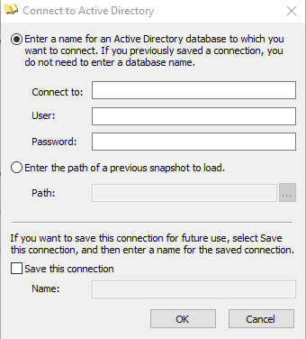 The presented fields are optional and can be useful if you are connecting to a different Active Directory domain than you are currently operating from or a different user context.