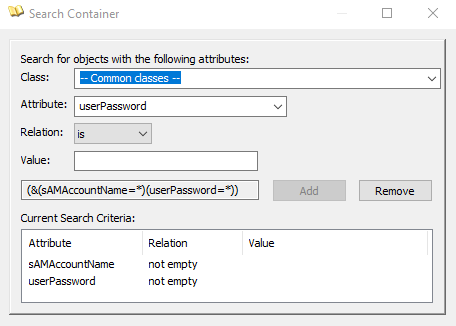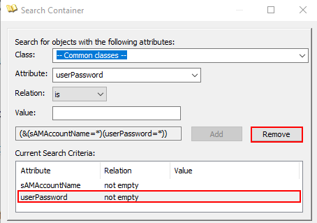 Once review is complete, click on the userPassword entry under “Current Search Criteria” and click Remove.