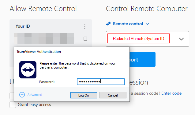Connect to the signing host using the TeamViewer client on your test VM using the ID and password recorded from the TeamViewer Host.