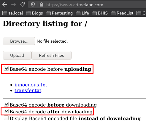 It’s possible to have the server double base64 encode files prior to delivery, which often bypasses perimeter controls for file infiltration/exfiltration. Just pass the --enable-b64 to enable this capability.